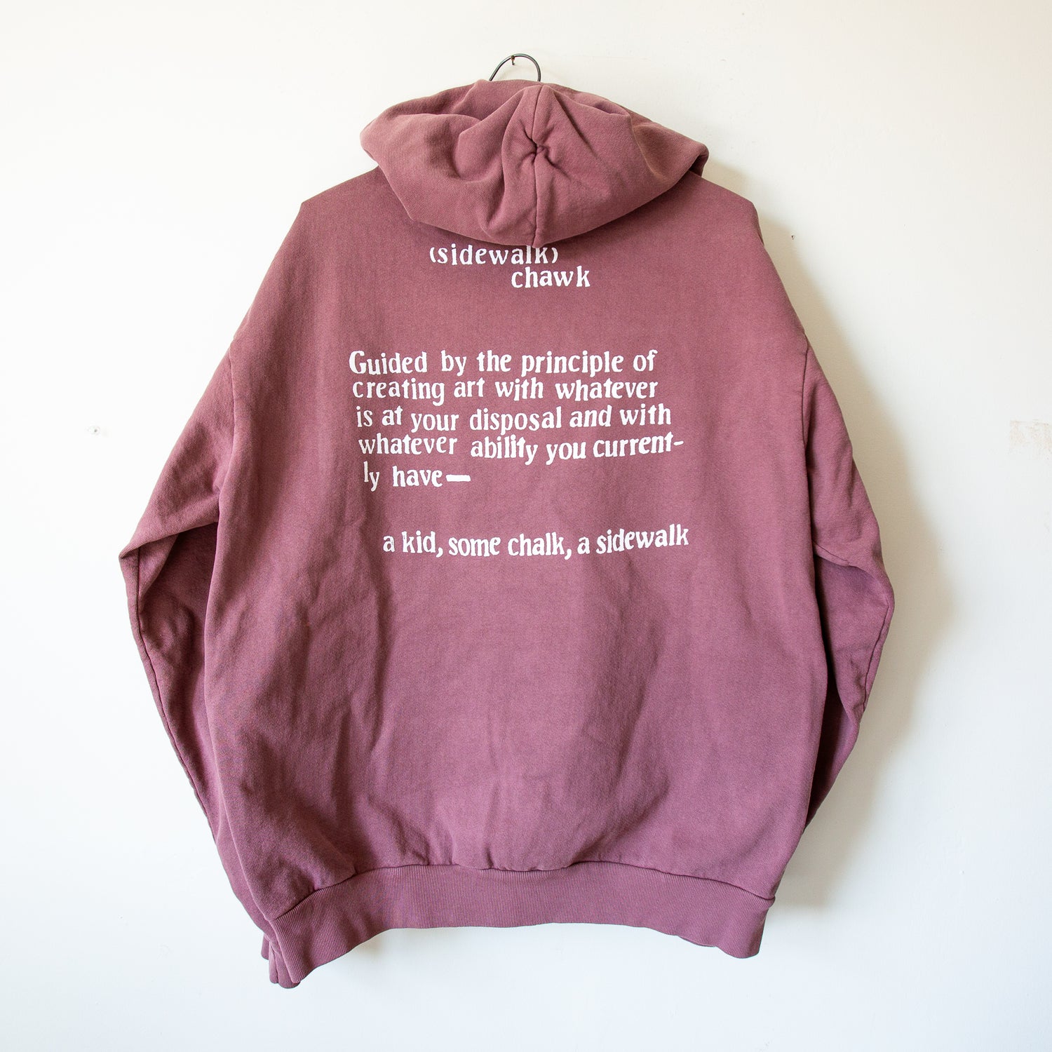 "(sidewalk) chawk Original photography, writing, and other mediums by local artist Cole Seefus screen-printed by hand onto vintage (or ethically made) garments. a kid, some chalk, a sidewalk."