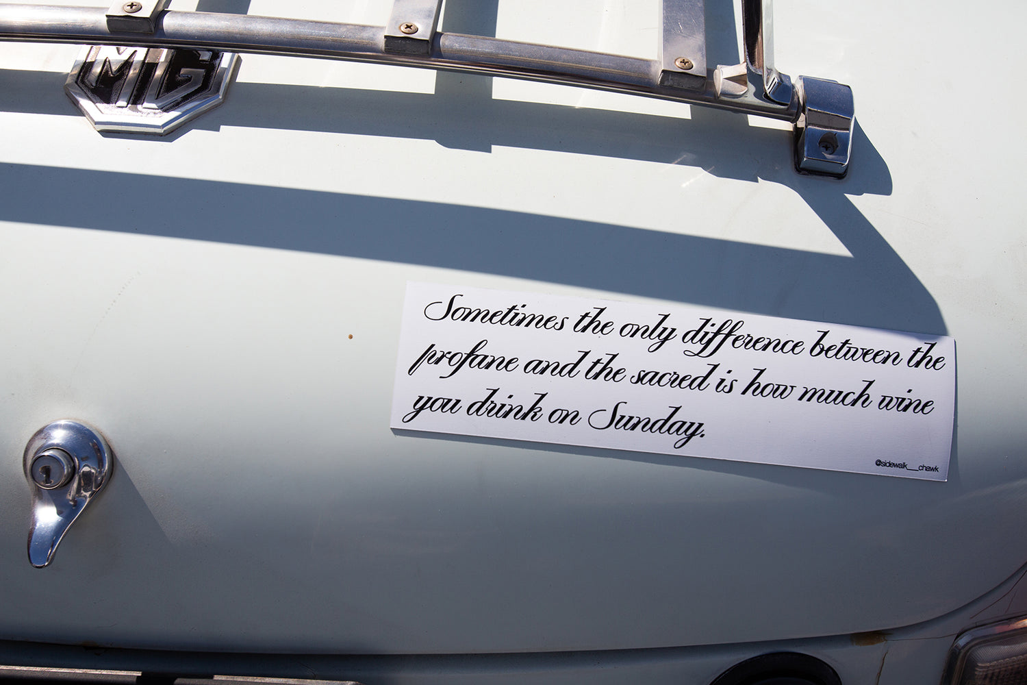 "Sometimes the only difference between the profane and the sacred is how much wine you drink on Sunday."