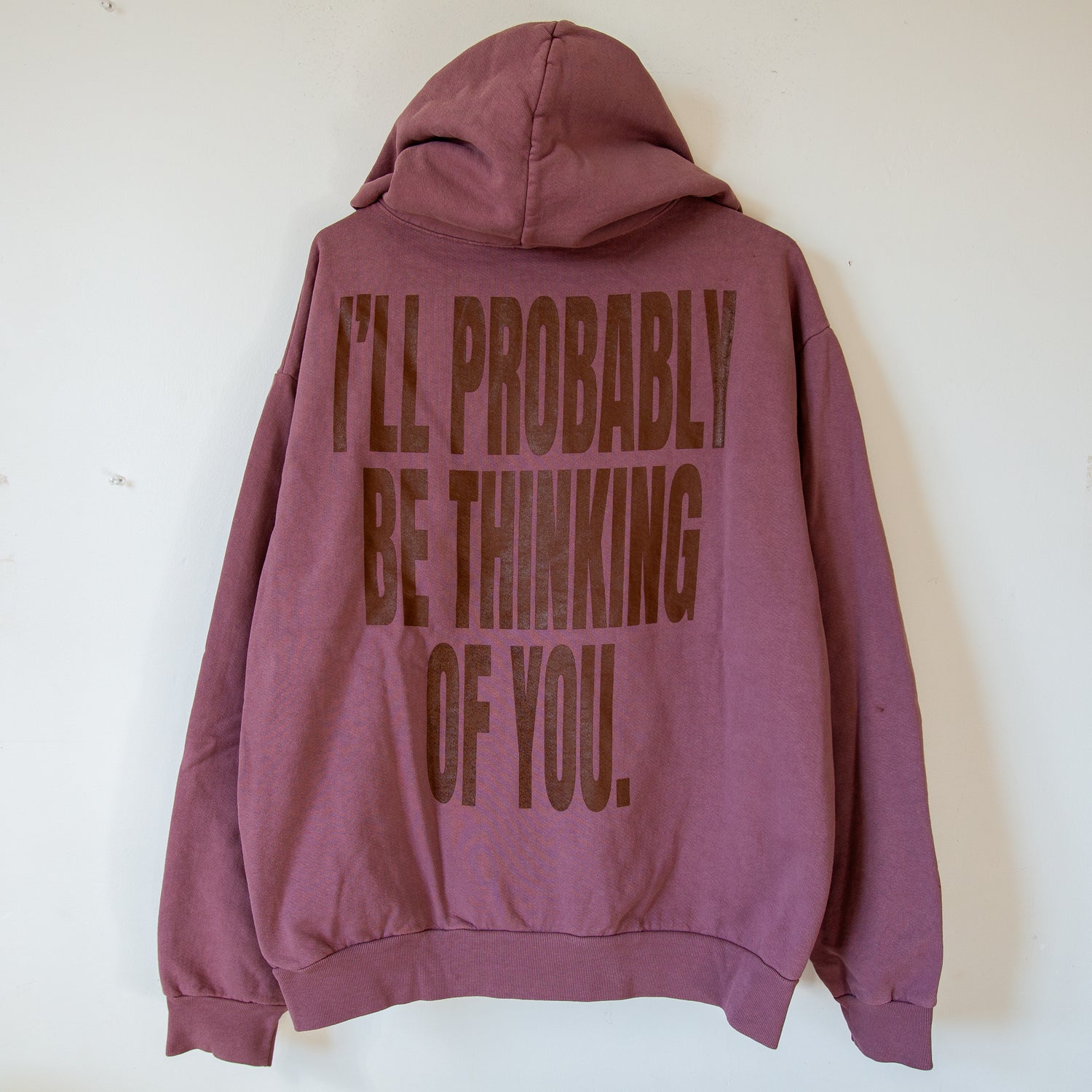 Printed onto a zip-up hoodie made in USA of recycled cotton, tagged L (24.5" pit-to-pit / 28" shoulder-to-hem)